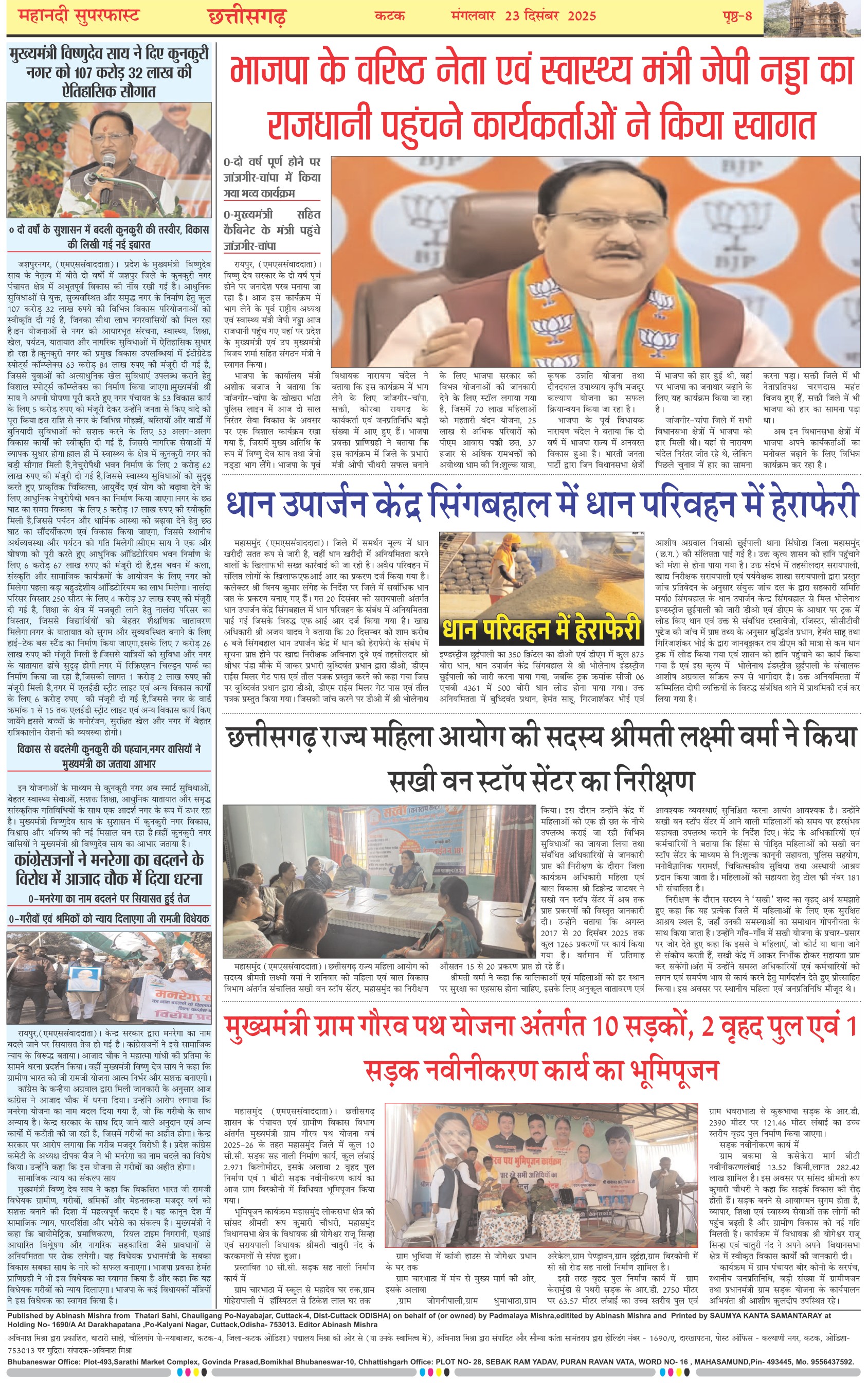 Mahanadi Superfast Hindi Daily Newspaper Cuttack Edition Page: 8