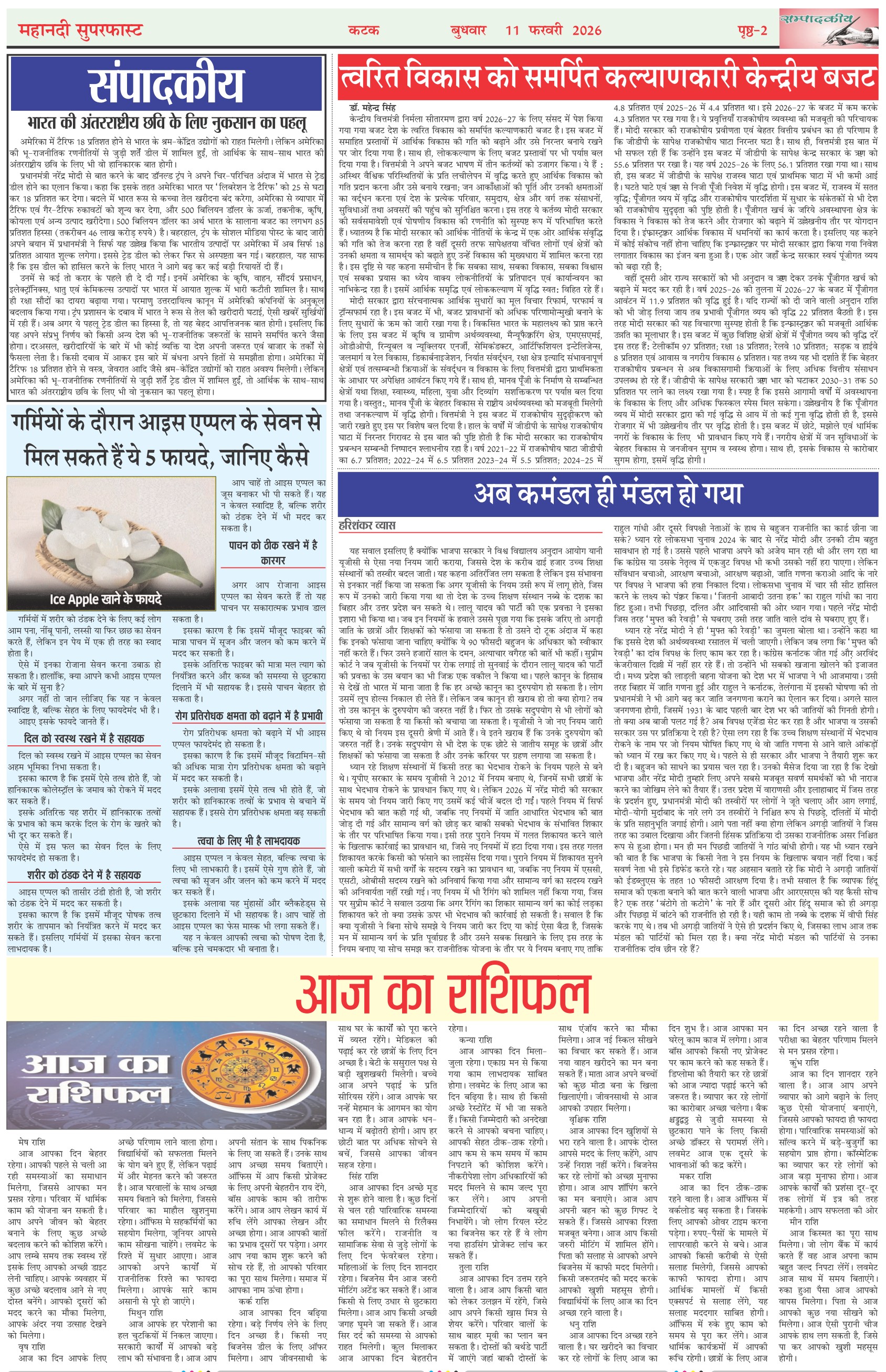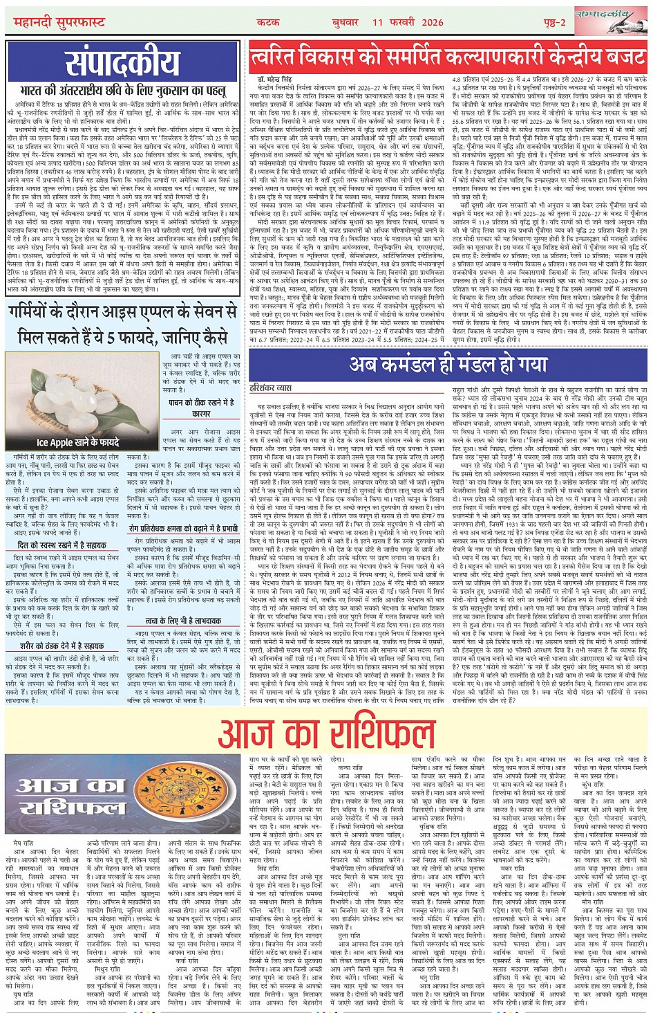 Mahanadi Superfast Hindi Daily Newspaper Cuttack Edition Page: 2