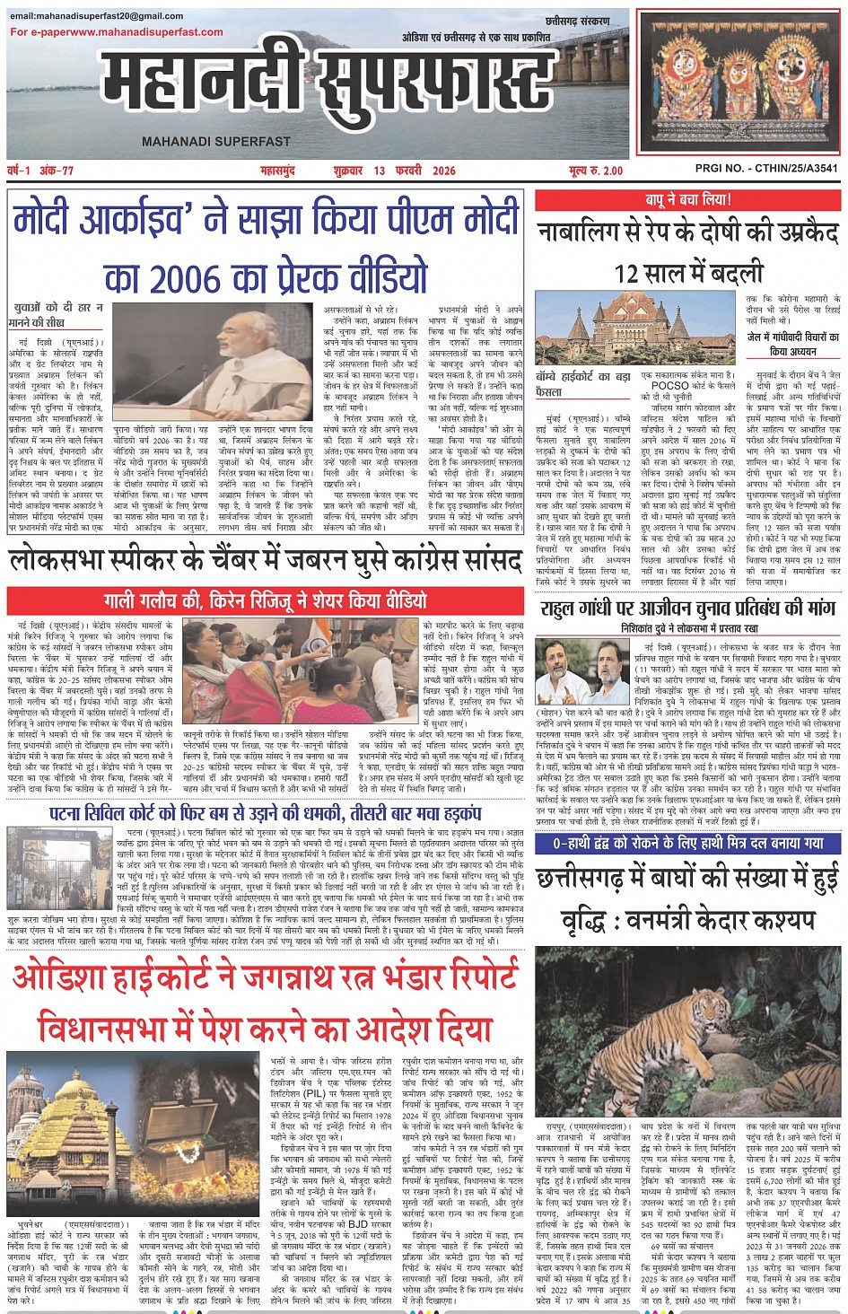 Mahanadi Superfast Hindi Daily Newspaper - Chhattisgarh Edition << First << 1 >> Last >> Page 1Page 2Page 3Page 4Page 5Page 6Page 7Page 8 × Mahanadi Superfast Hindi Daily Newspaper - Chhattisgarh Edition Page-1Page-2Page-3Page-4Page-5Page-6Page-7Page-8 << First << 1 >> Last >> Page-1Page-2Page-3Page-4Page-5Page-6Page-7Page-8 Page-1