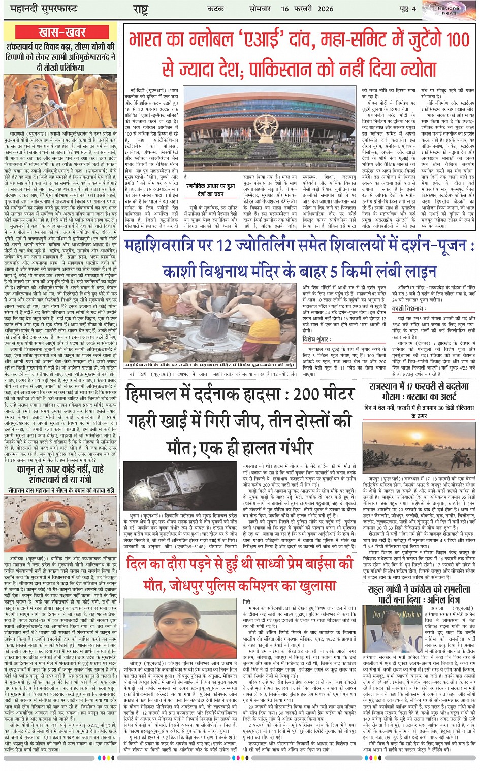 Mahanadi Superfast Hindi Daily Newspaper Cuttack Edition Page: 4 << First << 4 >> Last >> Page 1Page 2Page 3Page 4Page 5Page 6Page 7Page 8 × Mahanadi Superfast Hindi Daily Newspaper Cuttack Edition Page-1Page-2Page-3Page-4Page-5Page-6Page-7Page-8 << First << 4 >> Last >> Page-1Page-2Page-3Page-4Page-5Page-6Page-7Page-8 Page-4