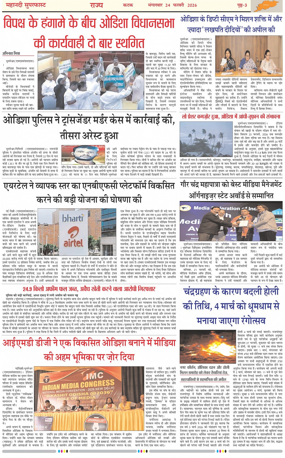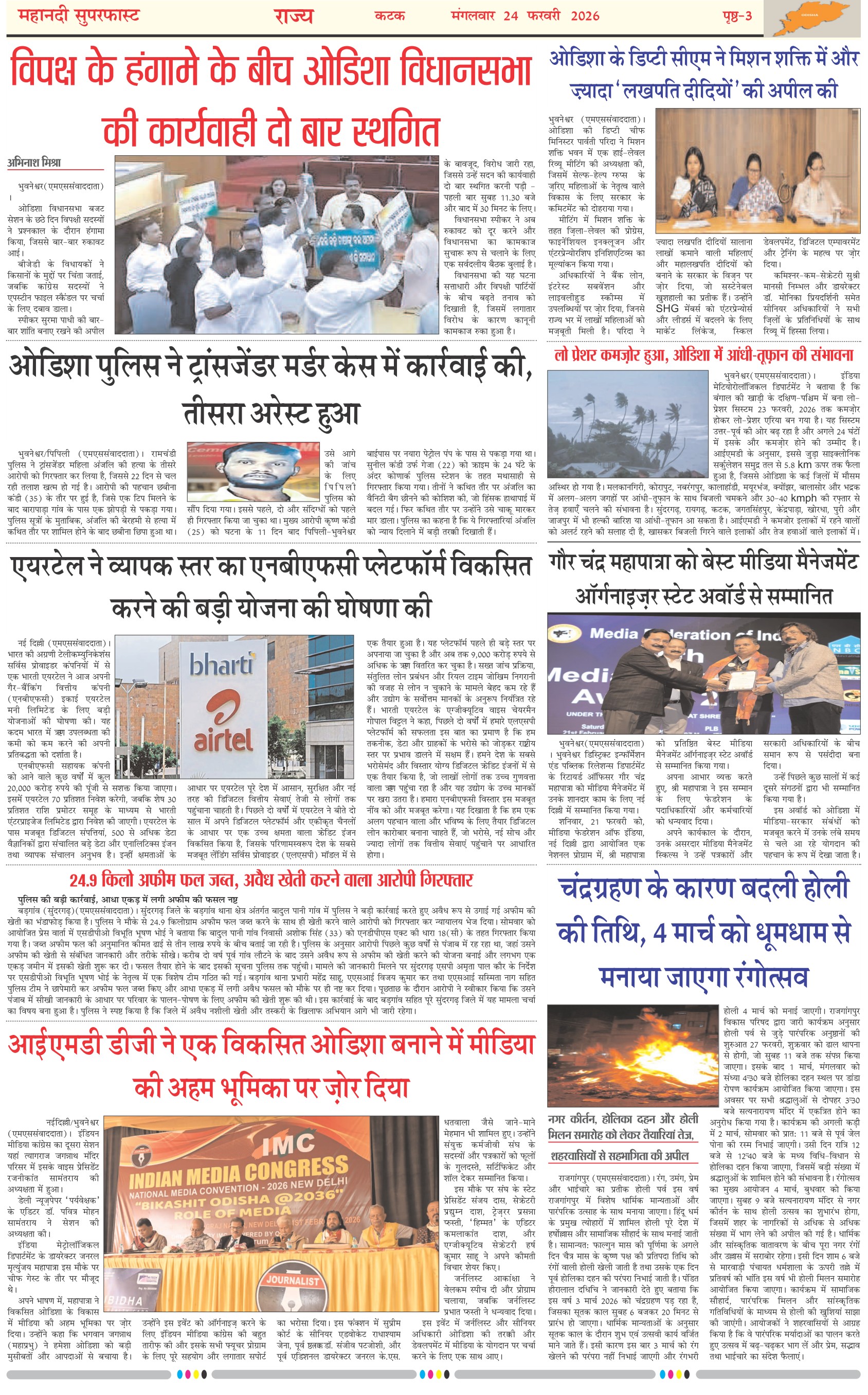 Mahanadi Superfast Hindi Daily Newspaper Cuttack Edition Page: 3 << First << 3 >> Last >> Page 1Page 2Page 3Page 4Page 5Page 6Page 7 × Mahanadi Superfast Hindi Daily Newspaper Cuttack Edition Page-1Page-2Page-3Page-4Page-5Page-6Page-7 << First << 3 >> Last >> Page-1Page-2Page-3Page-4Page-5Page-6Page-7 Page-3