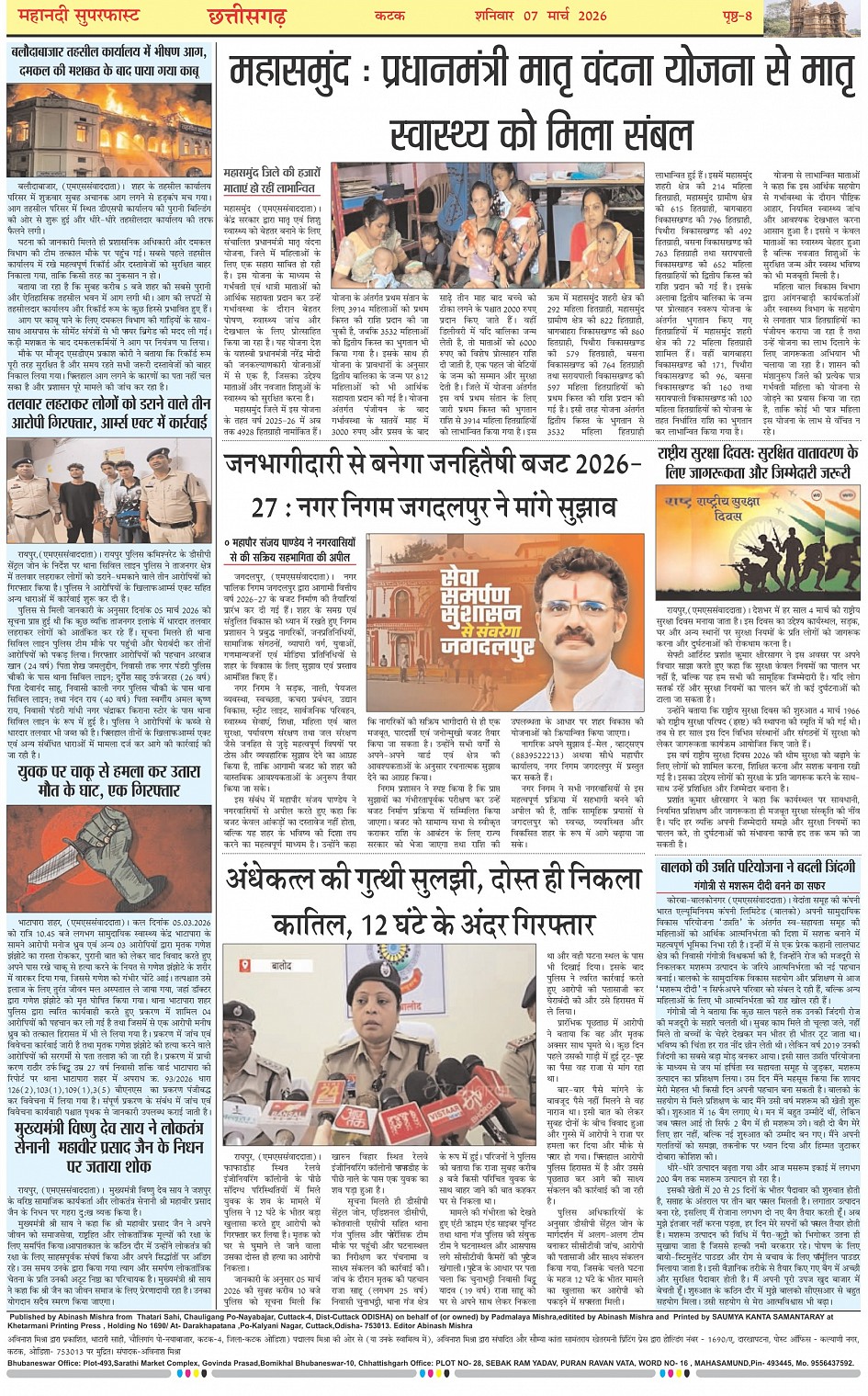 Mahanadi Superfast Hindi Daily Newspaper Cuttack Edition Page: 8 << First << 8 >> Last >> Page 1Page 2Page 3Page 4Page 5Page 6Page 7Page 8 × Mahanadi Superfast Hindi Daily Newspaper Cuttack Edition Page-1Page-2Page-3Page-4Page-5Page-6Page-7Page-8 << First << 8 >> Last >> Page-1Page-2Page-3Page-4Page-5Page-6Page-7Page-8 Page-8