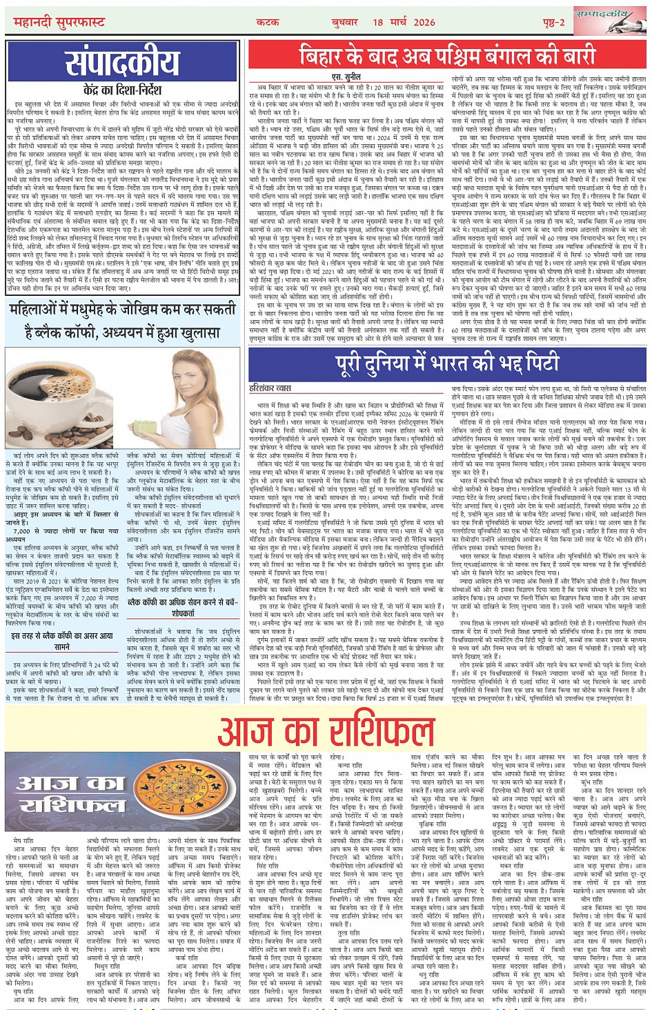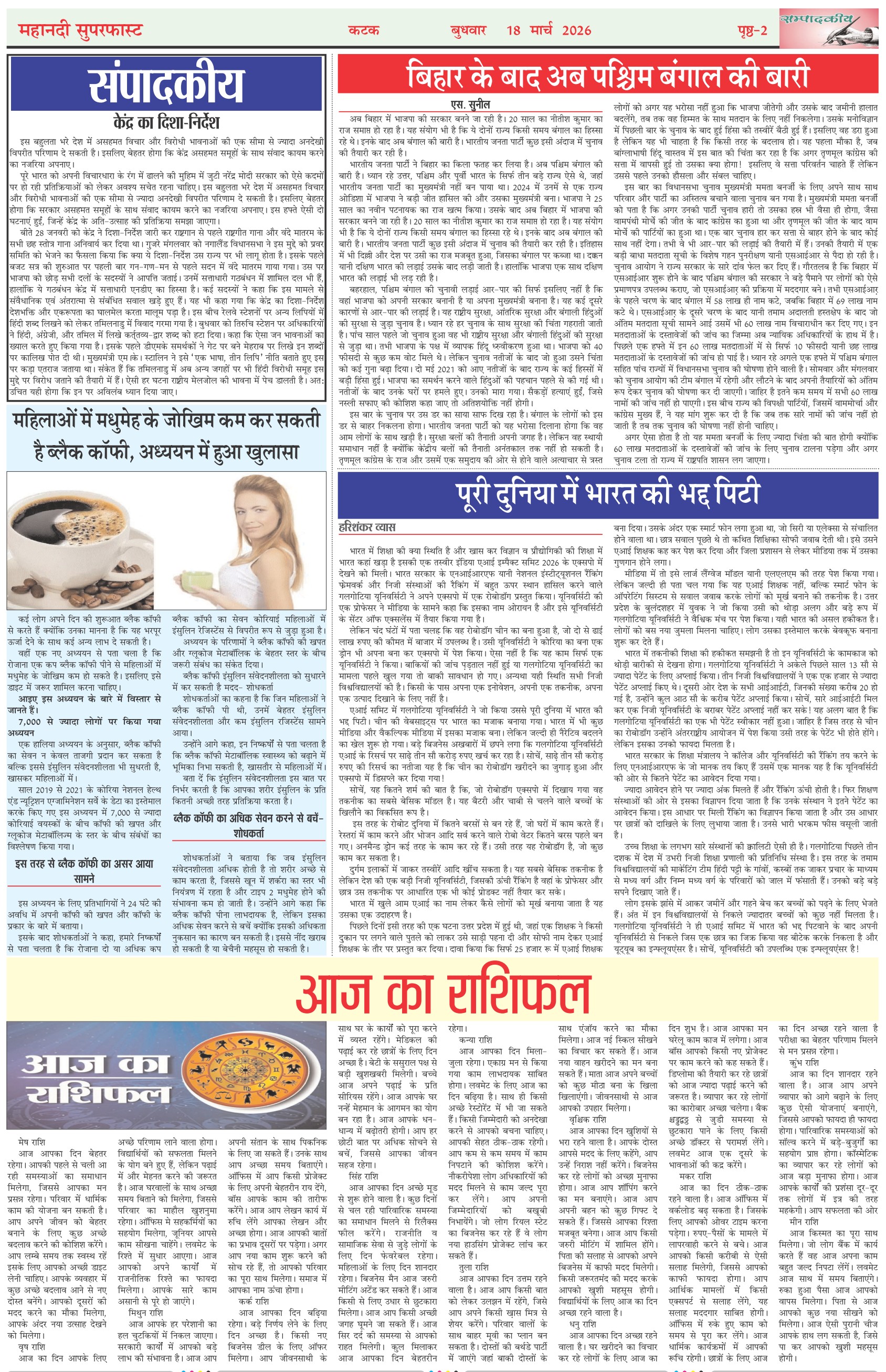 Mahanadi Superfast Hindi Daily Newspaper Cuttack Edition Page: 2