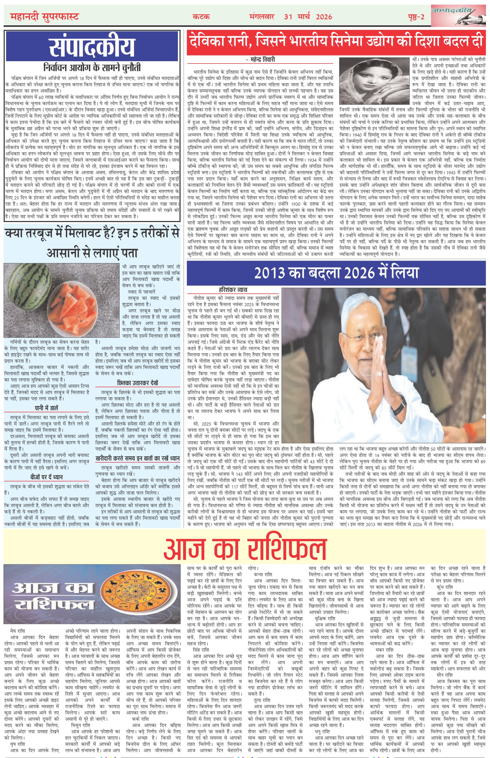 Mahanadi Superfast Hindi Daily Newspaper Cuttack Edition Page: 2