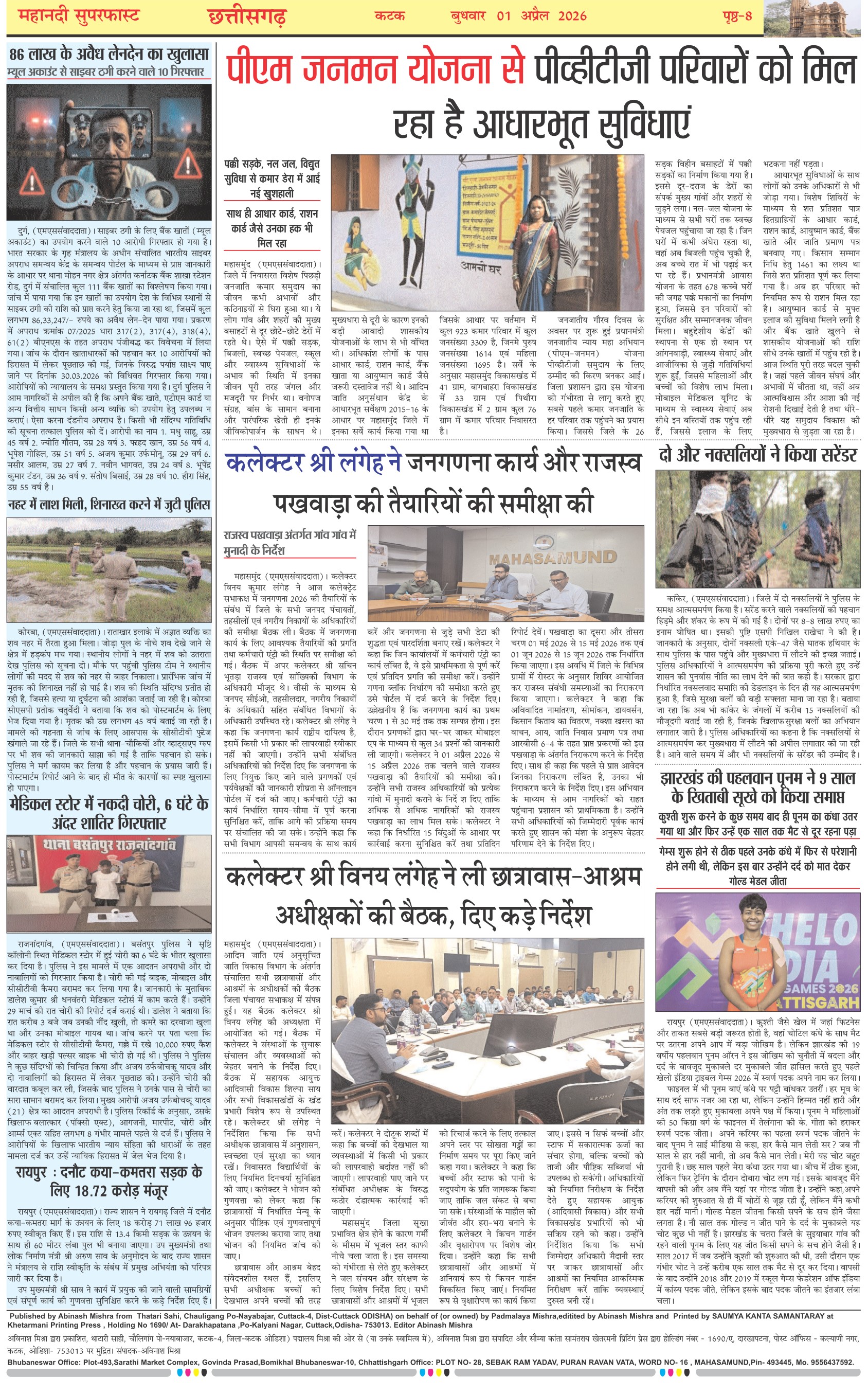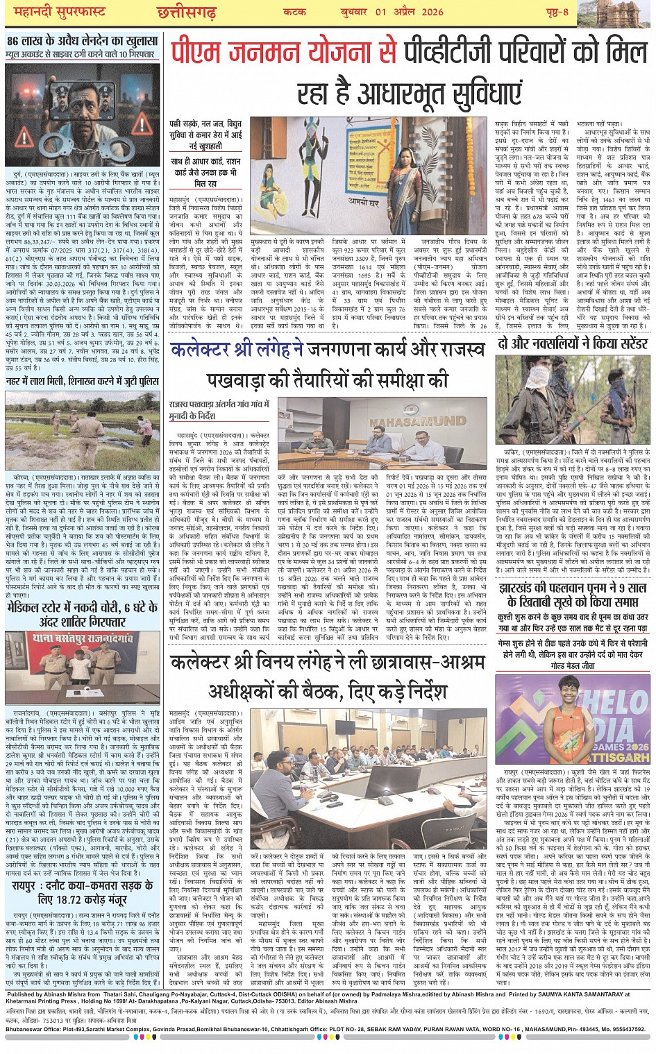 Mahanadi Superfast Hindi Daily Newspaper Cuttack Edition Page: 8