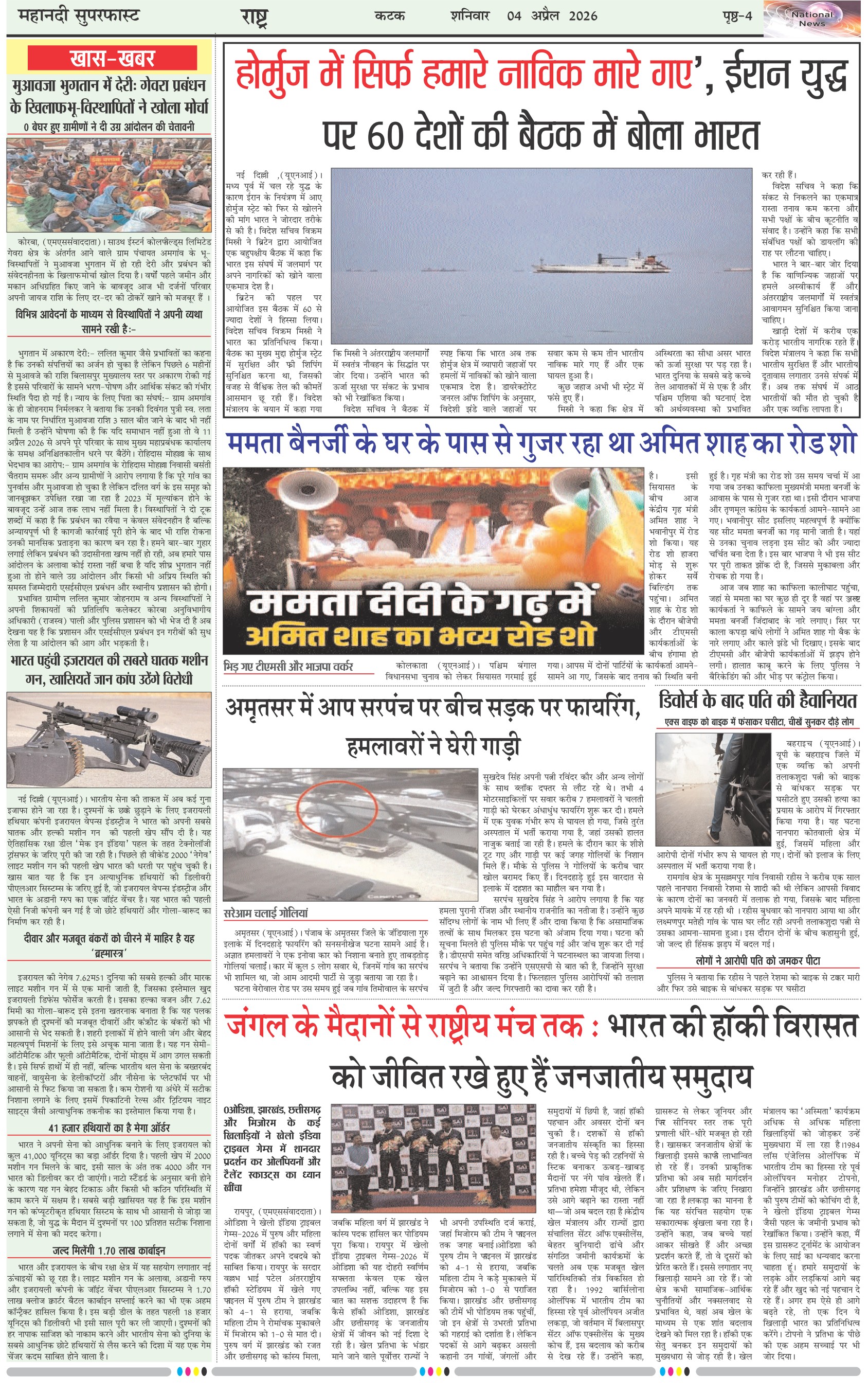 Mahanadi Superfast Hindi Daily Newspaper Cuttack Edition Page: 4 << First << 4 >> Last >> Page 1Page 2Page 3Page 4Page 5Page 6Page 7Page 8 × Mahanadi Superfast Hindi Daily Newspaper Cuttack Edition Page-1Page-2Page-3Page-4Page-5Page-6Page-7Page-8 << First << 4 >> Last >> Page-1Page-2Page-3Page-4Page-5Page-6Page-7Page-8 Page-4