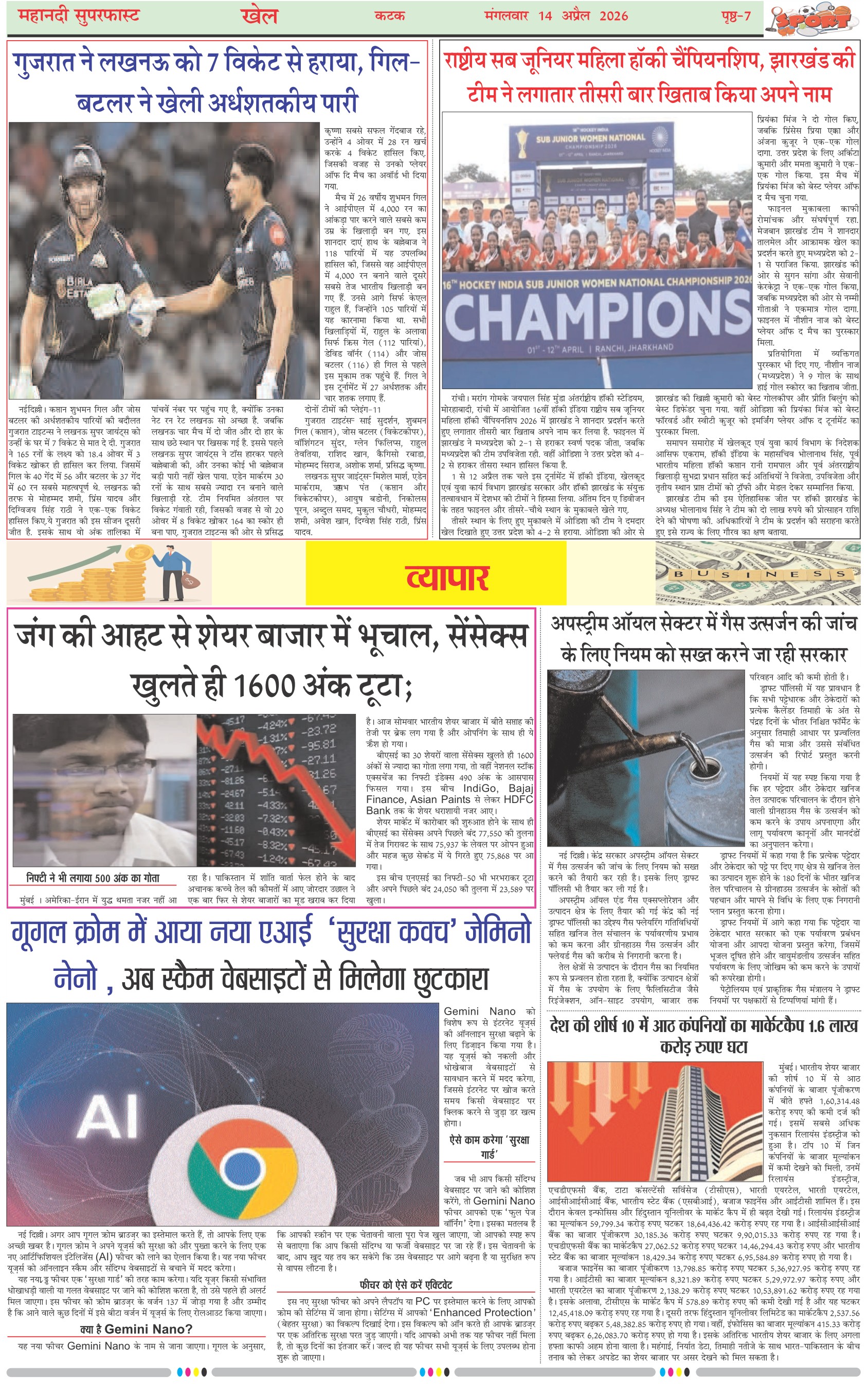 Mahanadi Superfast Hindi Daily Newspaper Cuttack Edition Page: 7 << First << 7 >> Last >> Page 1Page 2Page 3Page 4Page 5Page 6Page 7Page 8 × Mahanadi Superfast Hindi Daily Newspaper Cuttack Edition Page-1Page-2Page-3Page-4Page-5Page-6Page-7Page-8 << First << 7 >> Last >> Page-1Page-2Page-3Page-4Page-5Page-6Page-7Page-8 Page-7