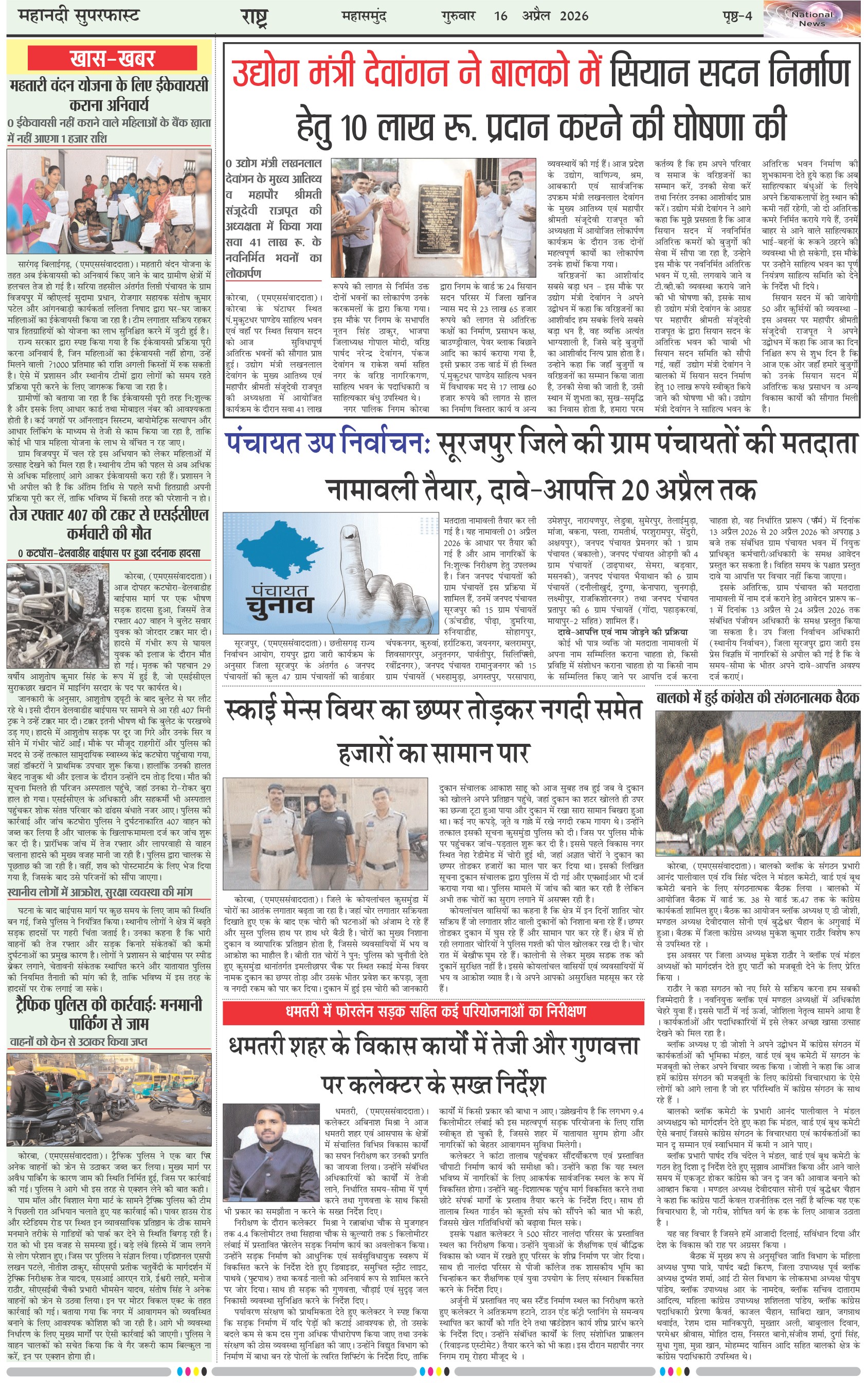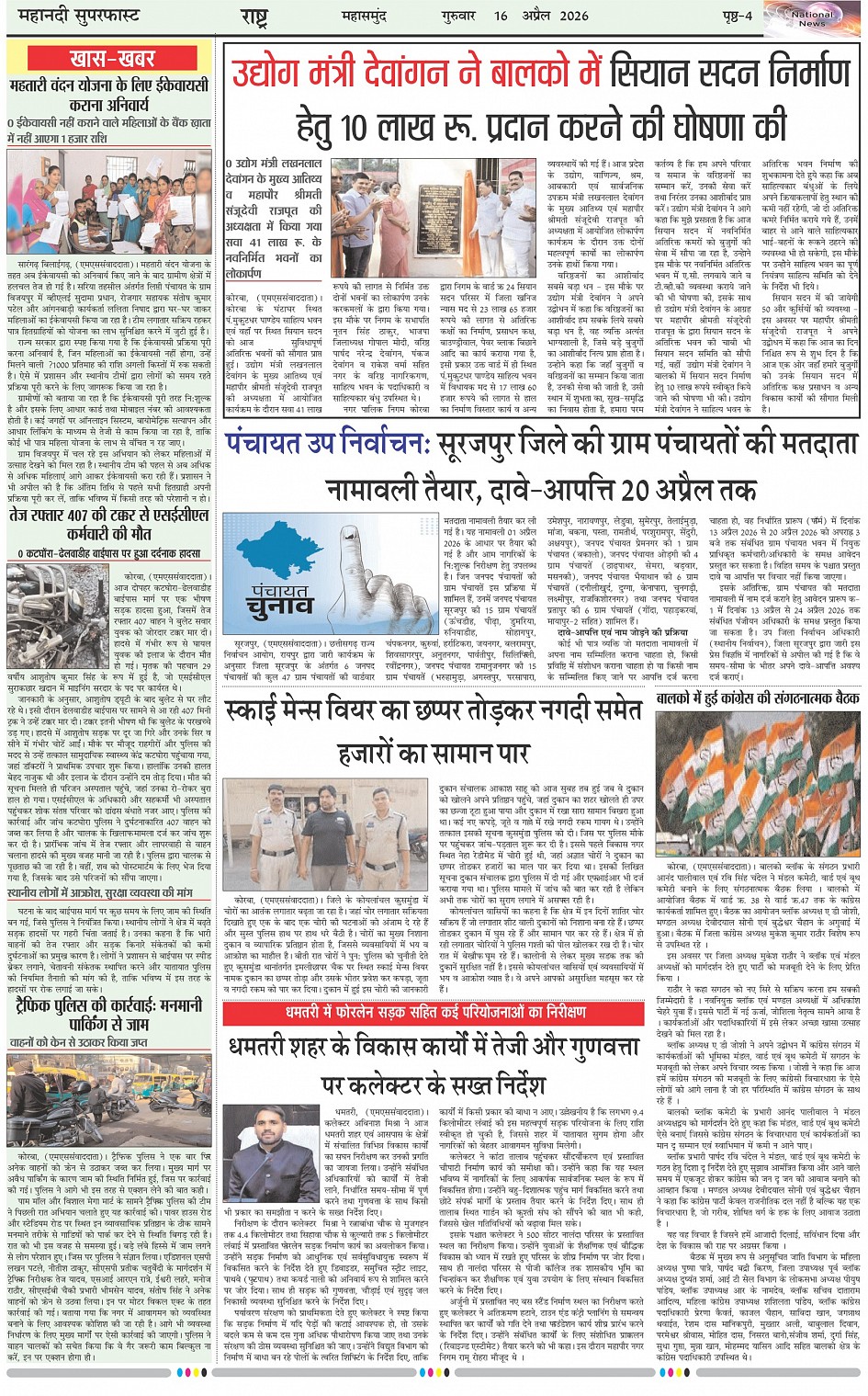 Mahanadi Superfast Hindi Daily Newspaper - Chhattisgarh Edition Page: 4